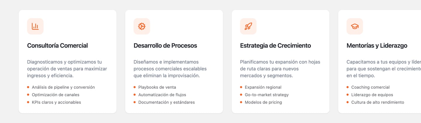 Transformamos equipos, procesos y estrategias para que vendas más, escales con orden y lideres tu mercado con resultados medibles.